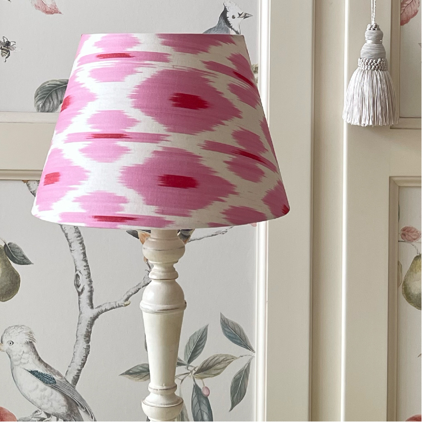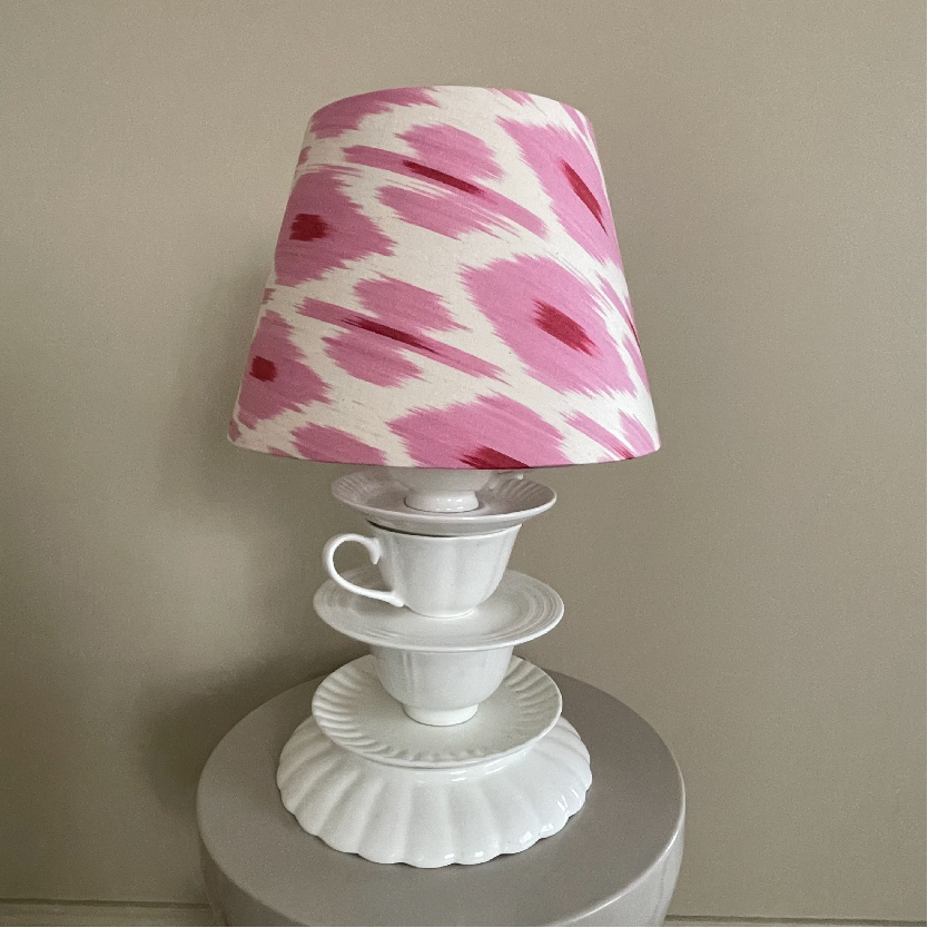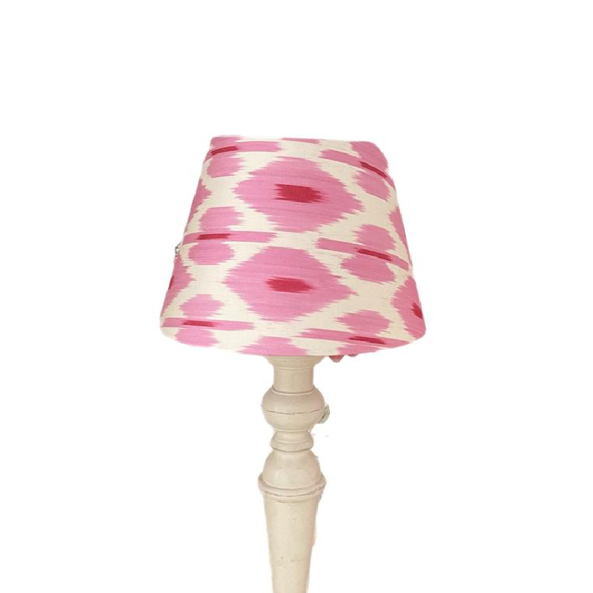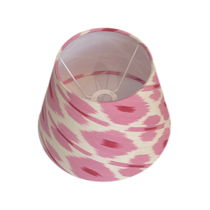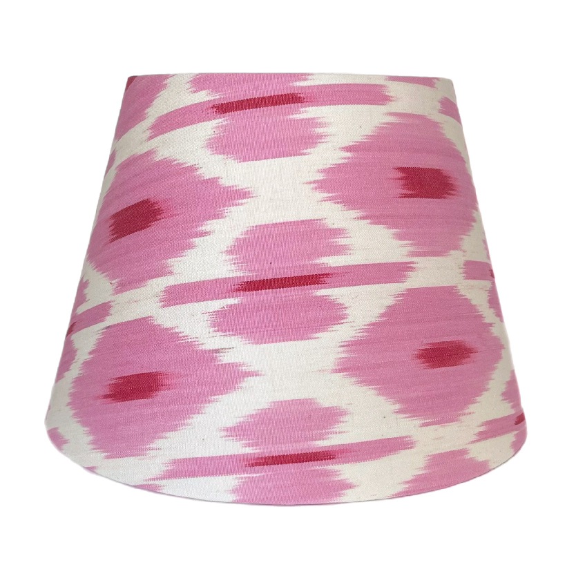 Абажур из натуральной ткани икат (70% шелк, 30% хлопок) и светотехнического пластика.