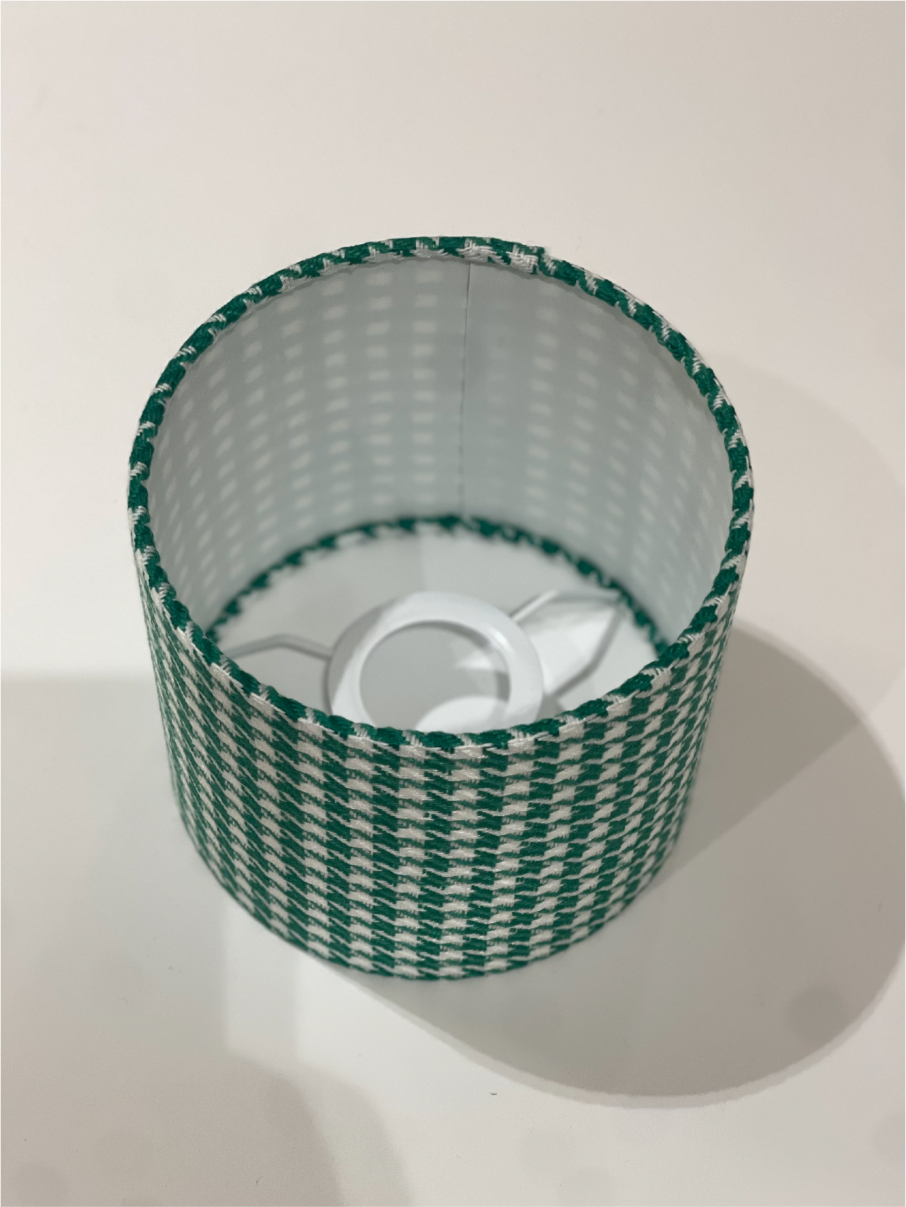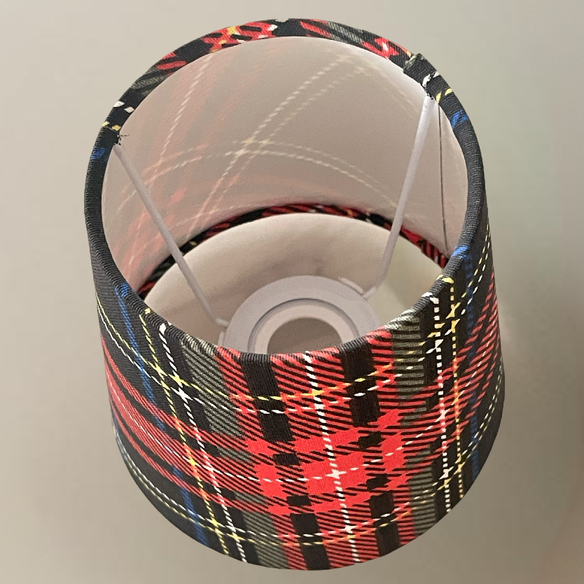Абажур из клетчатой ткани и светотехнического пластика.