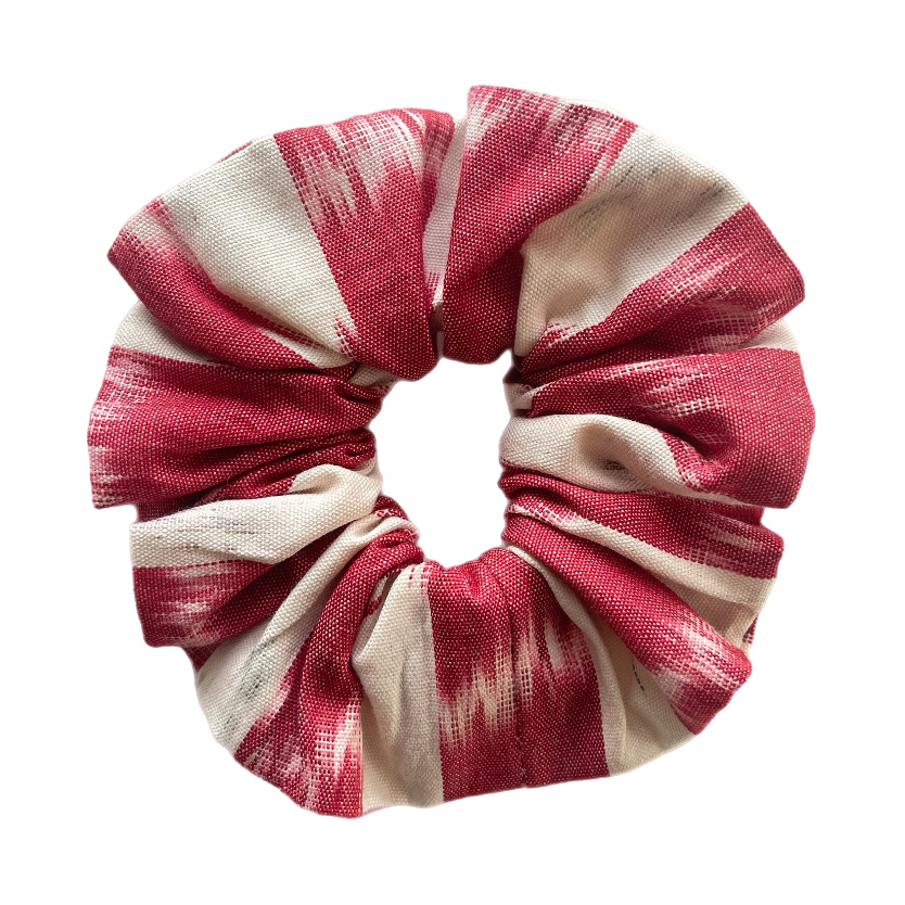 Наши резинки для волос из ткани икат сделаны в качестве небольшого подарка для вас при покупке подушки или абажура. Они добавят ярких красок и поднимут вам настроение.